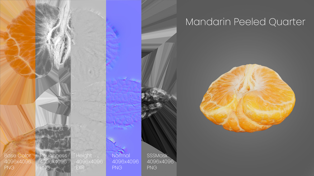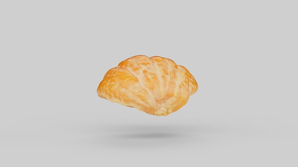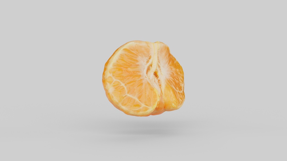 Half Mandarin Piece – Realistic 3D ModelBring lifelike realism to your next project with this high-quality 3D model of a Half Mandarin Piece, created using professional photogrammetry techniques.Perfect for close-up renders, food visualizations, product shots, packaging design, or realistic scene dressing in film, games, and advertising.